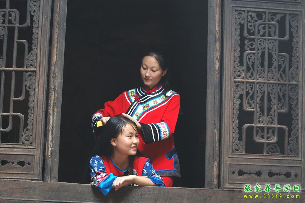 張家界市少數(shù)民族,從吃穿住行到婚喪嫁娶,從生兒育女,到娛樂活動,都具有鮮明的民族特色與地方特色,舊志書上說:“民情敦樸,土厚而風淳。”清康熙二十四年(公元1685年)編修的《永定衛(wèi)志》載:“楚風剛勁,其弊多流于憤激。永定隸在楚邊,俗尚淳樸,猶存中土之遺風。”又云:“男愿女樸,性勤稼穡,力專紡織……頗尚儉素。”從這些記述中,我們可窺見一斑。江蘇江寧府正元縣舉人金德榮,于清嘉慶十九年(公元1814年)來永定縣任知縣,他考察民情風俗以后,不久便寫了《永定風土二十韻》,現(xiàn)摘抄七句,以供參考: 欲問大庸俗,崇山舜典祥。