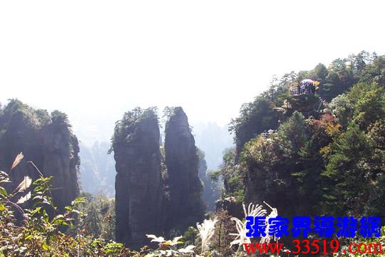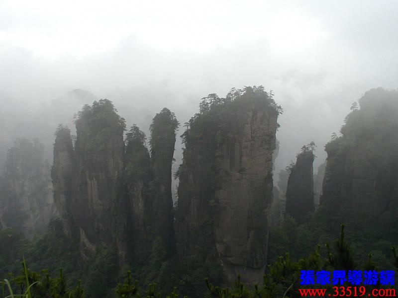 (山頂環(huán)覽線(xiàn):五指峰、前花園、黑樅垴)朋友們!這里的每一座巖峰都是一件古老的藝術(shù)品,每一座巖峰都隱藏著大自然的無(wú)窮奧秘。面對(duì)如此壯美雄奇、氣象萬(wàn)千的砂巖峰林風(fēng)光,幾年前,一位來(lái)自東北的女作家,就站在黃石寨(黃獅寨)上感嘆道:看了張家界的風(fēng)光,覺(jué)得真可以死了。接下來(lái)她又說(shuō),看了張家界的風(fēng)光,覺(jué)得更有理由好好活了。兩句話(huà)看起來(lái)前后矛盾,其實(shí)不然:前一句是說(shuō)能見(jiàn)一到像張家界這樣奇美的風(fēng)光,此生足矣;后一句是說(shuō)人生是如此美好,理應(yīng)更加珍愛(ài)生命。大家說(shuō)對(duì)不對(duì)? “人生不到張家界,百歲何能叫老翁。”