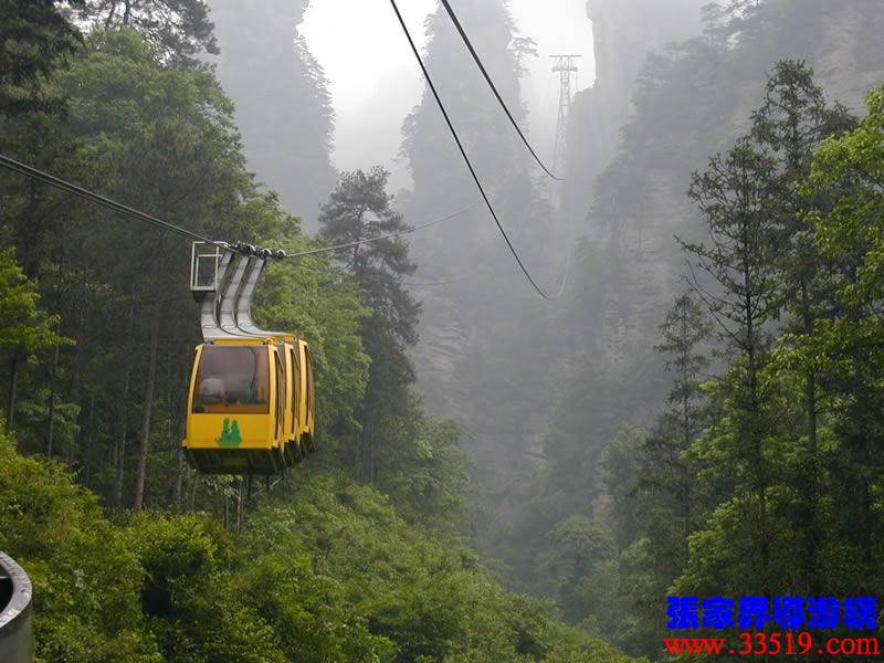 (索道站)現(xiàn)在,我們就要乘索道下山了。黃石寨(黃獅寨)索道是1995年5月至1997年9月臺(tái)灣證吉興業(yè)有限公司與張家界公園管理處合資興建的我市第一條觀光索道。索道線(xiàn)路水平距863,高差431米,運(yùn)行速度每秒8米,單向小時(shí)運(yùn)量948人,設(shè)備全部從法國(guó)波馬公司引進(jìn),總投資4000多萬(wàn)人民幣。黃石寨(黃獅寨)索道的建成,為公園開(kāi)辟了一條空中游覽線(xiàn),填補(bǔ)了張家界無(wú)觀光索道的空白。古詩(shī)說(shuō):會(huì)當(dāng)凌絕頂,一覽眾山小。乘索道觀張家界公園,別是一番感受。