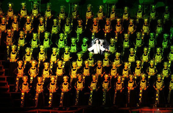 以此基礎(chǔ)進(jìn)行了藝術(shù)再創(chuàng)造,悲傷、歡樂、笑容、淚水交合成一個曲折動人的故事。整場演出體現(xiàn)人物細(xì)節(jié),以個性化的敘事結(jié)構(gòu)給人以親近感和頭尾呼應(yīng)的完整感。汲取世界豐富的音樂文化元素和表現(xiàn)形式,輔之以現(xiàn)代高科技的舞臺特效技術(shù),對世界音樂歌舞劇的一次成功的創(chuàng)新,成為中國山水實景演出的劃時代巨獻(xiàn)。
