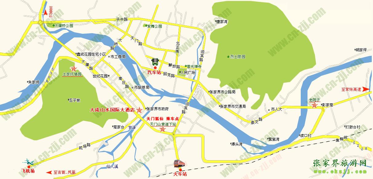 大成山水酒店至天門山景區(qū)可乘10路公交車,車費1元或打的5元即可到達(dá);