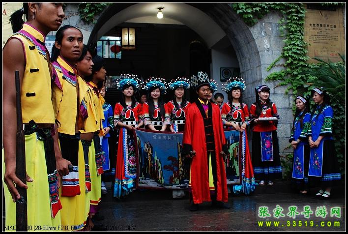 進入城內(nèi),在祭祀堂前舉行百人土家大祭祖活動,男女老少唱擺手歌、跳擺手舞,登世界最高的吊腳樓九重天,參觀土家族千百年來文化展示。到土家山寨,聽土家歌,賞土家族最有代表風(fēng)俗哭嫁,三棒鼓,花燈等民俗表演。