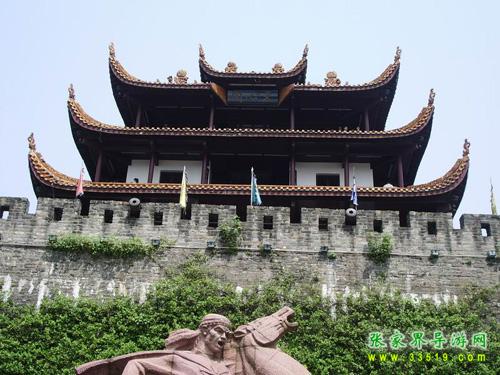 作為楚漢名城,長沙2000多年前就有寬厚的夯土城垣。明初悉改石基磚砌,外繞護(hù)城河。辛亥革命后拆城墻修環(huán)城公路,僅地勢最高的天心閣一段作為勝跡保留。時人有聯(lián)曰:“閣上九霄迎日月,城留一角看江山”。這段古城墻現(xiàn)長387.8米,高13.4米,頂面寬6.1米。分內(nèi)外兩城,外城又筑南北兩月城,內(nèi)有藏兵洞、炮洞等,并留清代鐵炮4門。城墻上尚存的斑斑彈痕,向人們訴說著城墻下的一段悲壯歲月:1852年9月10日,太平軍抵長沙南門外。西王蕭朝貴身先士卒,躍馬揮劍,在前沿指揮攻城,不幸于9月12日中炮犧牲。以此為背景,《太平軍魂》群像雕塑1993年10月在天心閣古城墻下揭幕,向世界展示了一曲農(nóng)民革命戰(zhàn)爭的悲壯頌歌。