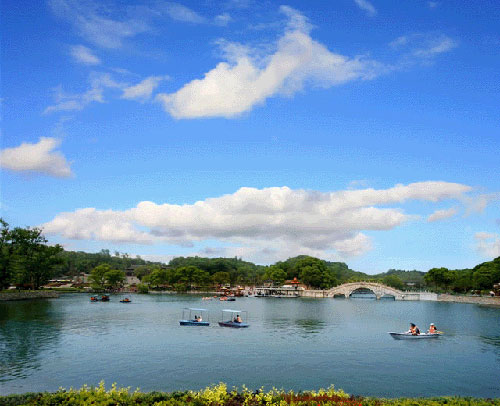 君山又是一個(gè)秀麗的綠洲,島上的草木自古就很聞名。現(xiàn)在每逢初春漲水之前,湖灘上綠草綿綿,野花斑斕,頗具草原風(fēng)味;一到夏天水漲,葦葉青青,水鳥(niǎo)出沒(méi),又是一派蘆蕩景象。君山有各種各樣的樹(shù),多達(dá)200余種,各種花卉,四時(shí)怒放,真是青碧連云,香飄全島。叢綠之中,尤以竹林、茶園最富特色。
