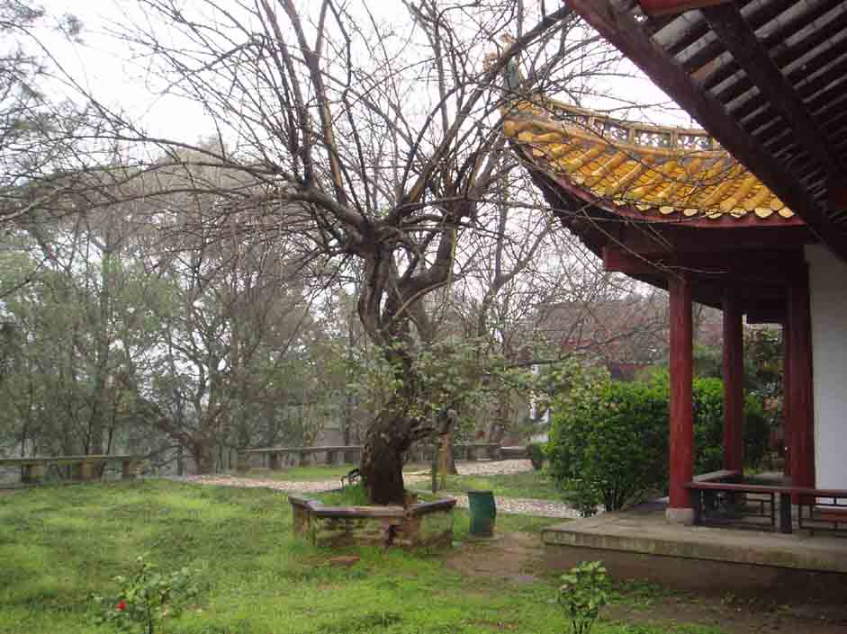 酒香亭在君山中部的酒香山峰上,掩映在翠竹藤蔓之中。入亭小憩,不僅鳥(niǎo)語(yǔ)花香,更有一股隱隱酒香撲鼻。原來(lái)此山中生長(zhǎng)著一種開(kāi)黃色小花的青藤,花香帶著酒味,這種藤叫酒泉藤,傳說(shuō)用藤上小花釀的酒,喝了長(zhǎng)生不老,可以成仙,這事傳到漢武帝耳里,他便派使臣欒巴率領(lǐng)男女?dāng)?shù)十人趕來(lái)君山,取回了仙酒。酒到京城,卻被當(dāng)時(shí)能言善辯的臣子?xùn)|方朔偷飲了。漢武帝得知,“龍顏”大怒,要將東方朔斬首。東方朔不慌不忙地奏道:“如果喝了此酒真會(huì)長(zhǎng)生不老,可以成仙,皇上就殺我不死,如果臣被殺死了,此酒皇上喝了也不會(huì)長(zhǎng)生不老。”武帝無(wú)言以對(duì),便赦免了他。這事傳到了君山,人們便在酒香山修了酒香亭,以為紀(jì)念。如今的此亭,為一九八一年恢復(fù),占地近三十二平方米,高六米余,為四柱方形、磚石木混合結(jié)構(gòu),古香古色,富有詩(shī)意。