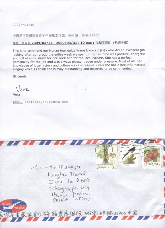 - 游客夏先生為表?yè)P(yáng)導(dǎo)游李姣姣寫來表?yè)P(yáng)信致我張家界... [14811]