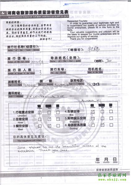 - 游客夏先生為表?yè)P(yáng)導(dǎo)游李姣姣寫(xiě)來(lái)表?yè)P(yáng)信致我張家界... [14811]