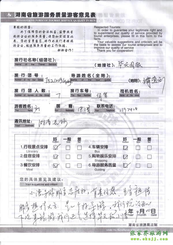 - 游客夏先生為表揚(yáng)導(dǎo)游李姣姣寫來表揚(yáng)信致我張家界... [14811]