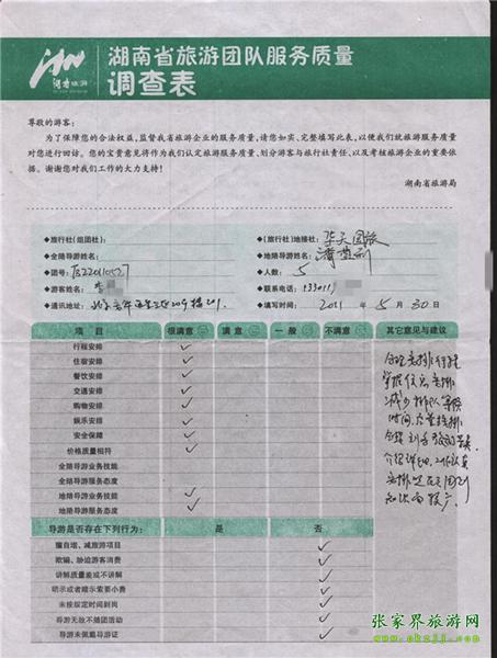 2011年5月30日李小姐一行5人旅游質(zhì)量反饋