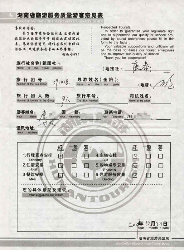 - 2011年10月5日張先生一行5人旅游質量反饋 [8454]