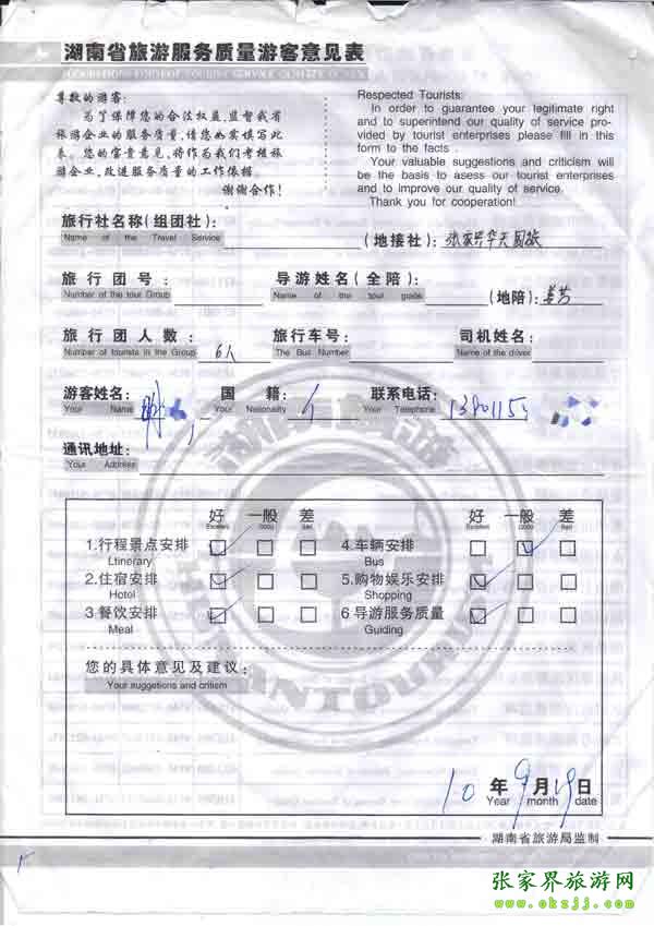 - 2011年10月5日張先生一行5人旅游質量反饋 [8454]
