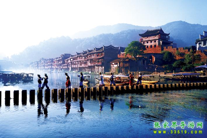這座曾被新西蘭作家路易艾黎稱作中國(guó)最美麗的小城之一的“鳳凰古城”建于清康熙時(shí),這顆“湘西明珠”是名副其實(shí)的“小”,小到城內(nèi)僅有一條像樣的東西大街,可它卻是一條綠色長(zhǎng)廊。