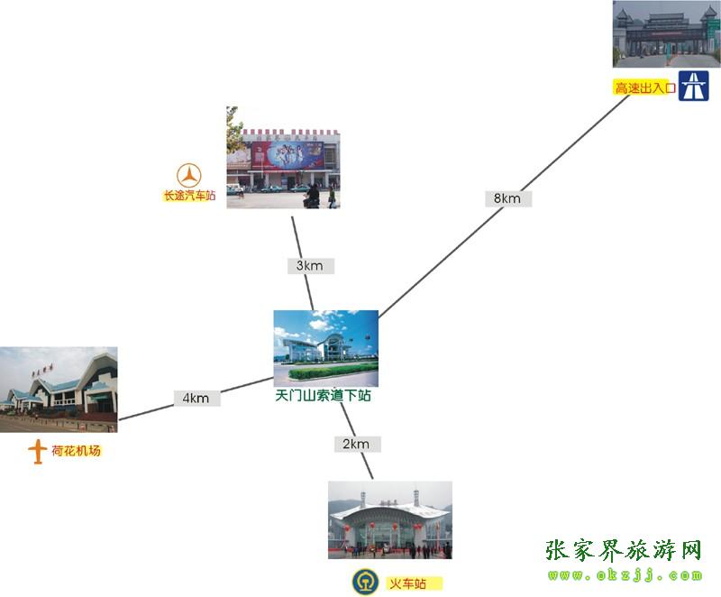 ![]() 天門山索道下站距荷花機場3公里,距火車站0.5公里,距長張高速公路出口也僅8公里之遙。景區(qū)周圍另有張羅、張清、張桑等公路通往省內(nèi)各個方向。進城公路和市內(nèi)主要道路均安裝了交通指引標示,寬暢的道路和清晰的指引路牌使得游客抵達天門山特別方便順暢。
