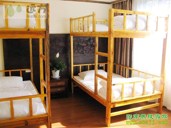 張家界八戒國際青年旅舍位于城市最中心地帶、國家AAAA景點大庸府城的石牌坊邊。整個旅舍為復式結構的仿古建筑,房間布置按照三星標準,結合少數(shù)民族特點,全部采用原木家具,極具古樸、清新、淡雅之色。三間別墅標間和一間8人間,窗戶面對的就是市區(qū)最高峰——天門山。兩間雙人間和兩間大床房以及三間4人間,推開窗戶即可俯瞰整個大庸府城,并可在夜晚免費欣賞原汁原味的土家風情歌舞表演。旅舍治安條件極佳,有24小時嚴格的保安巡查。